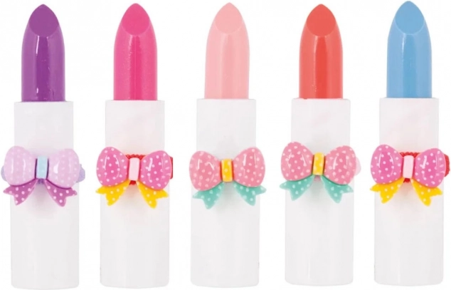 Zestaw zawiera różne kolory pomadek i lakierów do paznokci, oferując dzieciom możliwość wyboru i zabawy swoim wyglądem.