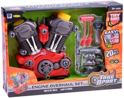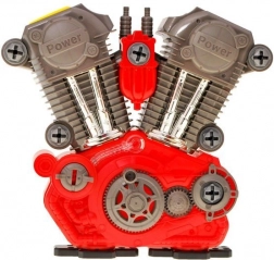 W zestawie znajduje się bogaty zestaw narzędzi, dzięki któremu silnik można wielokrotnie rozkręcać i skręcać. Wszystko wykonane z wytrzymałego tworzywa sztucznego, aby zabawa trwała długo i była łatwa w obsłudze nawet dla małych rąk. Świetny pomysł na prezent, który wspiera małą motorykę, cierpliwość i kreatywne myślenie.