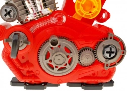 Przezroczyste elementy pozwalają obserwować pracujące koła zębate. Efekty światła i dźwięku dodają zabawie autentyczności i utrzymują dzieci w roli małego mechanika.