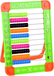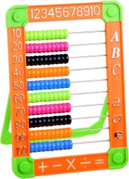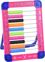 Praktyczne plastikowe liczydło z wielobarwnymi koralikami to idealna pomoc dla dzieci rozpoczynających przygodę z liczbami, dodawaniem i odejmowaniem. Rama jest uzupełniona o liczby i litery, co wspiera pierwsze kroki w matematyce i alfabecie. Składana podpórka zapewnia wygodne użytkowanie na stole i łatwe przechowywanie.