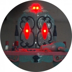 Naciśnij serduszko nad lustrem, aby włączyć delikatne podświetlenie i melodię. Dekoracyjne elementy na drzwiczkach również rozświetlą się, potęgując magię zabawy.