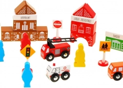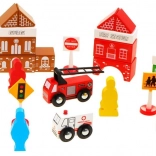 Drewniane zestawy budowlane Miasteczko Straż Pożarna są starannie wykonane z dbałością o detale. Kolorowe elementy przyciągają uwagę i zachęcają do zabawy. Te drewniane klocki są trwałe i będą służyć przez długi czas. Wykonane z naturalnych materiałów, są w pełni ekologiczne.