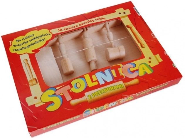 - Kompletne wyposażenie: blat, deseczka, wałek, ubijak, tłuczek