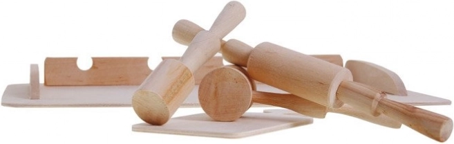 Wszystkie elementy są wykonane z wysokiej jakości drewna, z zaokrąglonymi krawędziami dla wygodnego i bezpiecznego chwytu małych kucharzy.
