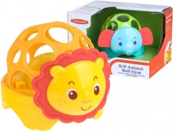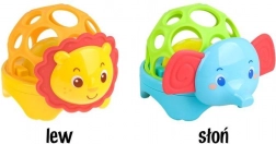 Ta lekka i bezpieczna zabawka w kształcie uroczego zwierzątka safari ma elastyczną, ażurową konstrukcję z dużymi otworami, które ułatwiają chwytanie małymi rączkami. W środku znajduje się kuleczka, która podczas ruchu świeci i wydaje radosny dźwięk. Miękkie uszka lub grzywa zachęcają do dotyku i gryzienia, wspierając percepcję sensoryczną.