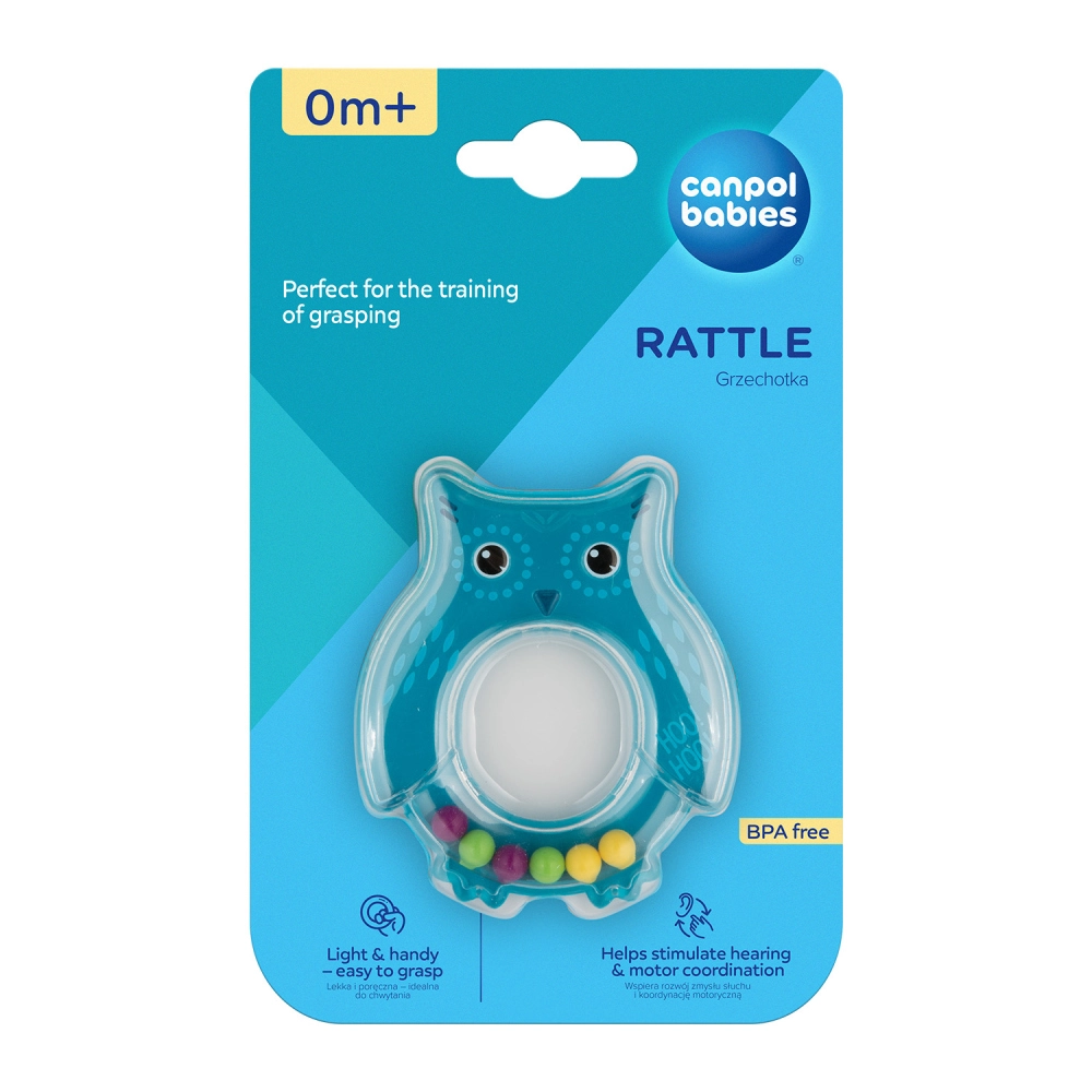 Grzechotka jest przeznaczona dla najmłodszych dzieci. Atrakcyjne kształty i intensywne kolory przyciągają uwagę dziecka. Ruchome lub dźwiękowe elementy wprowadzają dziecko w świat dźwięków i kolorów. Grzechotki są wykonane z bezpiecznych materiałów (bez ostrych krawędzi). Instrukcja użycia: Utrzymuj w czystości. Myj szczoteczką w ciepłej wodzie z delikatnym środkiem myjącym, polej wrzątkiem. Nie gotuj, nie sterylizuj. Uwaga! Ważne dla bezpieczeństwa i zdrowia Twojego dziecka! Przed każdym użyciem sprawdź jakość produktu. Przy pierwszych oznakach zużycia lub uszkodzenia nie używaj produktu dalej – wymień go na nowy. Grzechotka spełnia wymagania: Dyrektywa Parlamentu Europejskiego i Rady 2009/48/WE w sprawie bezpieczeństwa zabawek, EN 71-1 Bezpieczeństwo zabawek – Część 1: Właściwości mechaniczne i fizyczne, EN 71-2 Bezpieczeństwo zabawek – Część 2: Palność, EN 71-3 Bezpieczeństwo zabawek – Część 3: Migracja określonych pierwiastków.