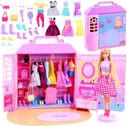 Zestaw: lalka z przenośną szafą i akcesoriami