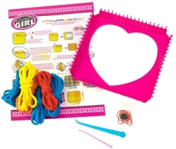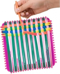 Kwadratowa rama pewnie utrzymuje pętelki na miejscu, dzięki czemu dzieci mogą skupić się na wzorach i kolorach. Dołączone narzędzia ułatwiają przeplatanie oraz wykończanie brzegów.