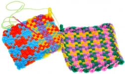 Gotowe prace sprawdzą się jako podkładki pod kubki, łapki kuchenne czy małe torebki. Dzięki miksowi kolorów wyglądają efektownie i cieszą jako ręcznie wykonany prezent.