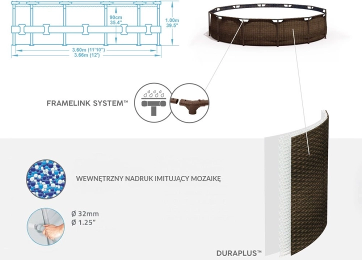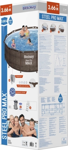 Stylowy i przestronny basen BESTWAY Steel Pro MAX o średnicy 3,66 m i wysokości 1 m to doskonały wybór na rodzinne orzeźwienie. Realistyczny rattanowy wygląd idealnie wpasuje się w każdy ogród, a solidna rama z technologią FrameLink System zwiększa stabilność i odporność na korozję.