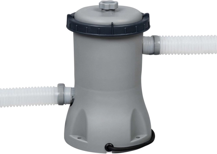 W zestawie znajduje się kartuszowa pompa filtrująca z filtrem typu II, wężami i akcesoriami, co ułatwia cyrkulację i filtrację wody.
