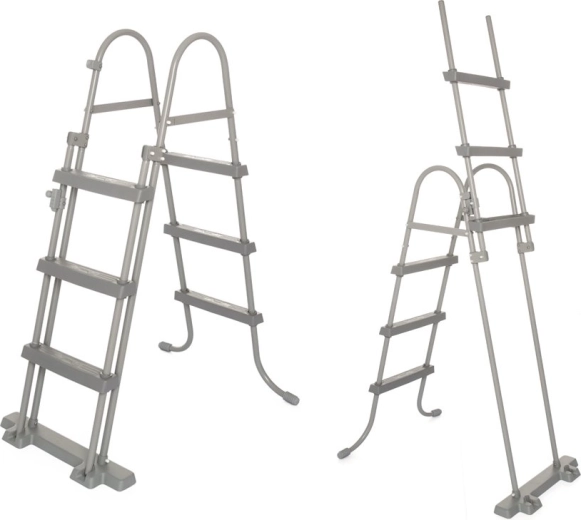Solidna drabinka bezpieczeństwa umożliwia wygodne wchodzenie i wychodzenie. Stopnie można łatwo wyjąć, gdy basen nie jest używany, aby zwiększyć bezpieczeństwo dzieci.