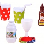 - Plastikowe naczynia: Miska, talerzyk, kubki ze słomkami.