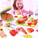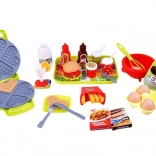 Wspaniały zestaw kuchenny z goframi pozwala każdemu małemu kucharzowi przygotować słodkie gofry, frytki i hamburgery. Wykonane z bezpiecznego plastiku, idealne dla dzieci, które uwielbiają zabawę w gotowanie.