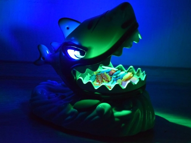 Rekin z świecącą paszczą oraz oczami dodają dramatyzmu. Bezpieczne zęby zapewniają bezstresową grę.