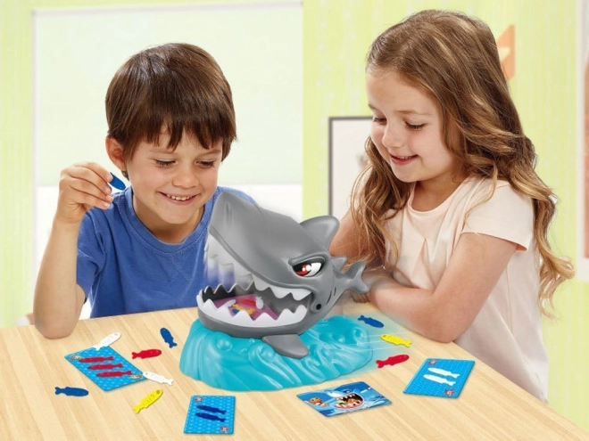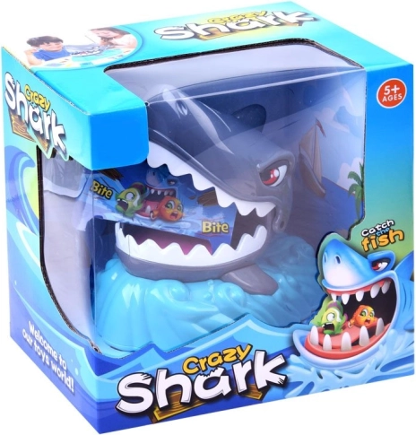 Gra Szalony rekin polega na losowaniu karty z ilością rybek, które musisz wyciągnąć z jego paszczy. Podczas gry rozbrzmiewa muzyka, która napięta atmosferę, a paszcza i oczy rekina świecą, co dodaje dramatyzmu. Niewłaściwe wyciągnięcie ryby może skończyć się uściskem palców, ale zęby są bezpieczne.