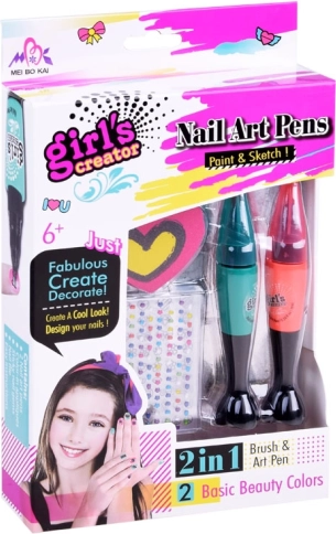 Zestaw do zdobienia paznokci dla młodych dziewcząt. Ten kolorowy zestaw zawiera wszystko, czego potrzebujesz, aby tworzyć kreatywne paznokciowe stylizacje.