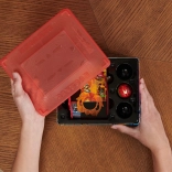 Sprytne, dwupoziomowe ułożenie mieści do 6 Bakuganów, 2 talie kart i pierścienie ataku. Odłączaną pokrywkę błyskawicznie zamienisz w arenę do pojedynków gdziekolwiek jesteś.