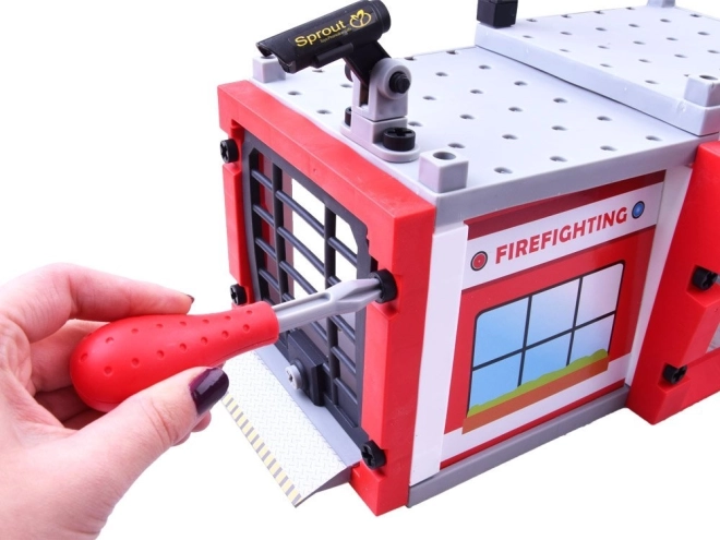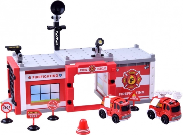 Kompletny zestaw z elementami do budynku, garażu i akcesoriów. Dzieci łatwo zbudują bazę do wszystkich strażackich misji i będą się cieszyć realistyczną zabawą.