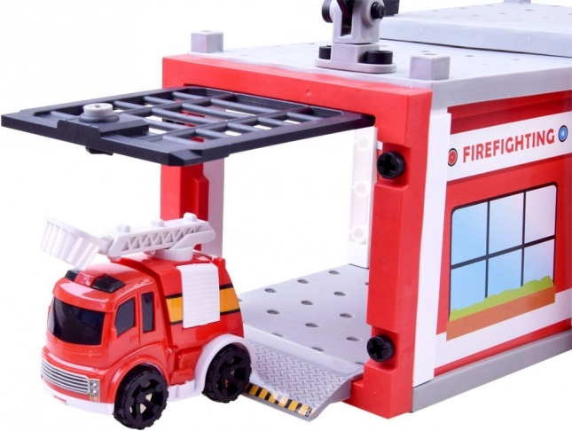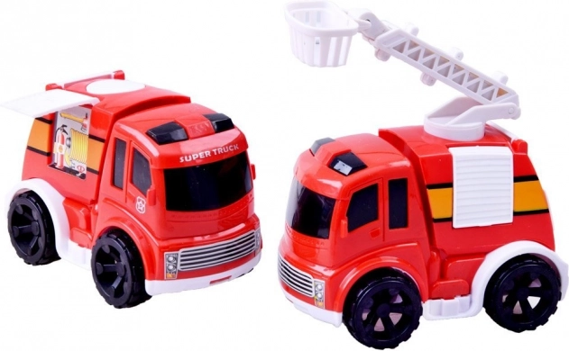 W zestawie dwa czerwone autka z dopracowanymi detalami, jedno z wysuwną drabiną. Idealne do scenariuszy ratunkowych i jazdy po stacji.