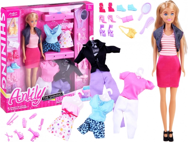 Stylowa lalka ANLILY zachwyci każde dziecko, które kocha modę i zabawy w odgrywanie ról. W zestawie znajdziesz różne ubranka (sukienki, koszulki, spodnie), buty i torebki oraz akcesoria fryzjerskie do czesania i stylizacji. Dzięki nim łatwo stworzysz nieskończone kombinacje stylizacji i zapewnisz lalce zawsze doskonały look.