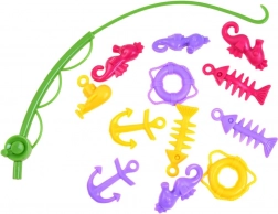 Zestaw zawiera wędkę oraz szereg kolorowych morskich skarbów, które zachęcają dzieci do wielokrotnej zabawy i ćwiczenia zręczności.