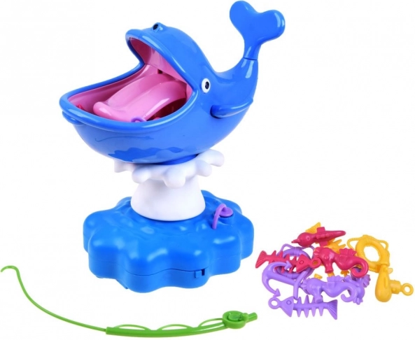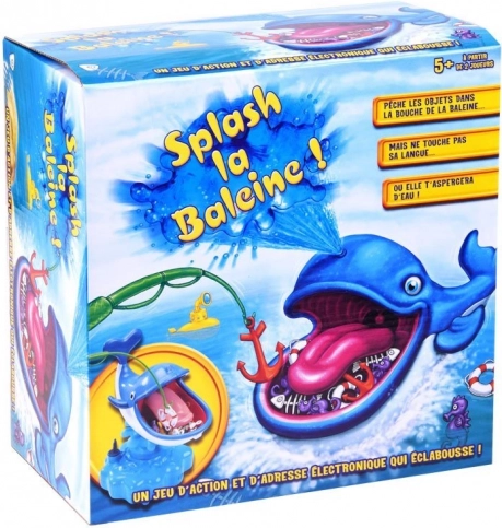 Gra Wodny Wieloryb to świetna interaktywna zabawa dla całej rodziny. Dzieci ćwiczą motorykę małą, cierpliwość oraz koordynację oko–ręka, rywalizując w łowieniu kotwicy, kół ratunkowych czy rybich szkieletów prosto z paszczy uśmiechniętego wieloryba. Ale uwaga – dotknięcie języka uruchamia wodny prysznic!