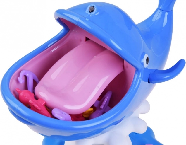 Wlej wodę, włóż skarby do paszczy i graj. Niebieski wieloryb na stabilnej podstawie wygląda świetnie i jest bezpieczny do dziecięcej zabawy.