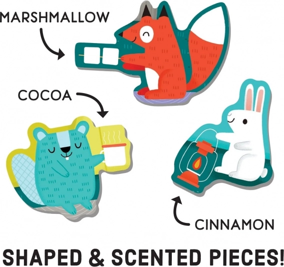 Zanurz się w świecie leśnych przyjaciół przy ognisku. Te pachnące puzzle przynoszą nie tylko radość z układania, ale też zabawny element sensoryczny – trzy specjalne części pachną piankami marshmallow, kakaem i cynamonem. Dzięki nasyconym kolorom, matowemu wykończeniu i gładkiemu tyłowi elementy przyjemnie leżą w dłoni i świetnie do siebie pasują.