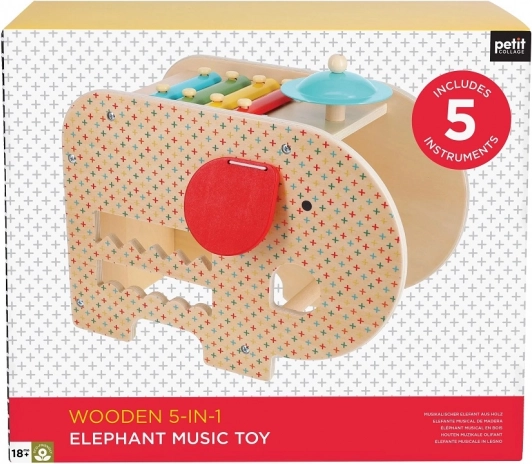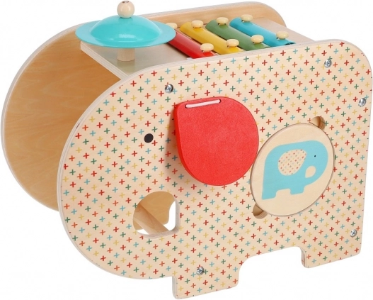 Słoń oferuje pięć instrumentów muzycznych w jednym: ksylofon, bębenek, talerz i inne dla rozwoju kreatywnego wyrażania muzycznego.