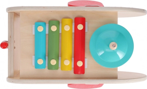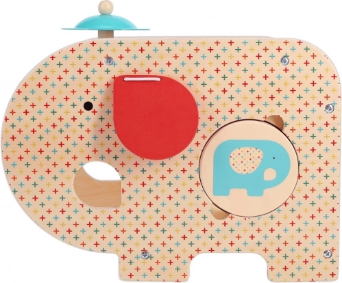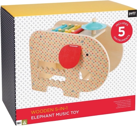 Poznawaj dźwięk i rytm dzięki temu wszechstronnemu drewnianemu słoniowi. Zawiera pięć różnych opcji zabawy, takich jak gra na ksylofonie, bębenku, talerzu i innych.