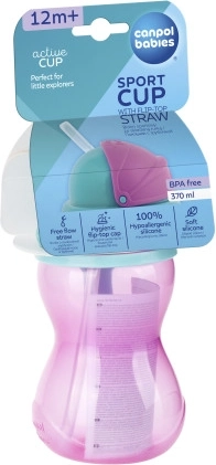 Sportowa butelka CANPOL BABIES ze słomką została zaprojektowana do wygodnego, codziennego picia aktywnych dzieci. Dzięki profilowanemu kształtowi świetnie leży w małych rączkach, a zamykane wieczko chroni słomkę przed zabrudzeniami. Butelka idealna do wody i rozcieńczonych soków.