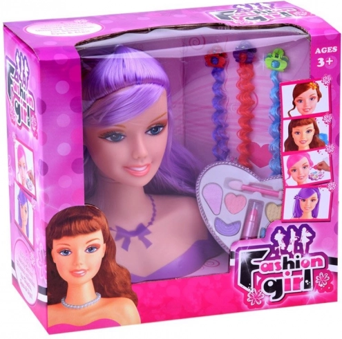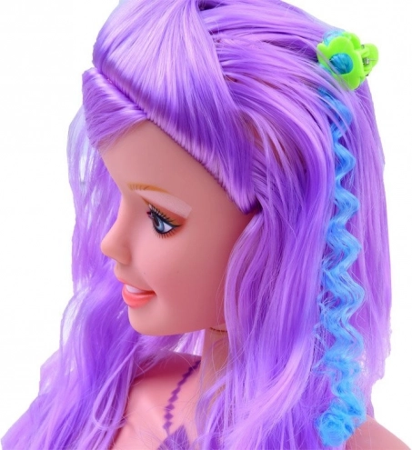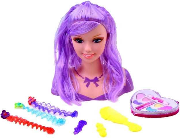 Twórz piękne fryzury i eksperymentuj z kreatywnym stylem z tą głową do stylizacji dla dzieci. Zawiera kolorowe spinki do włosów, żółty grzebień oraz zestaw do makijażu.