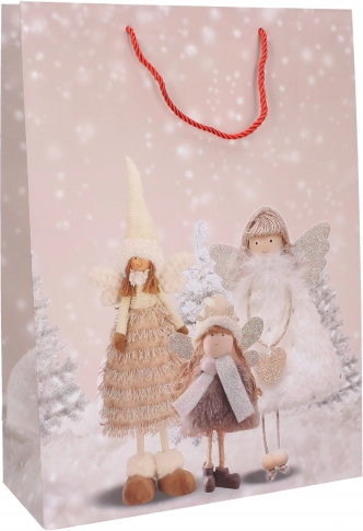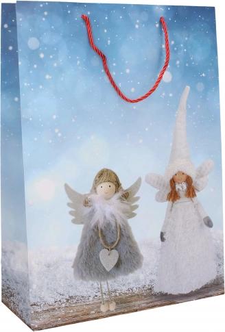 Świąteczna torba prezentowa w rozmiarze L o wymiarach 41,5 × 30 × 12 cm zapewnia szybkie i eleganckie pakowanie większych prezentów. Wybierz spośród 4 świątecznych motywów i dopasuj opakowanie do atmosfery Bożego Narodzenia.
