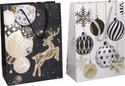 Stylowa torebka prezentowa w rozmiarze S ucieszy każdego pod choinką. Oferuje kompaktowe wymiary 18 × 24 × 8,5 cm i cztery świąteczne motywy. Dzięki solidnemu wykonaniu jest idealna do szybkiego i eleganckiego pakowania mniejszych upominków. Świąteczny design, praktyczny rozmiar oraz łatwe użycie bez cięcia i klejenia.