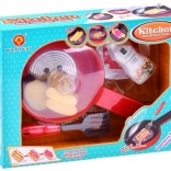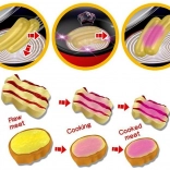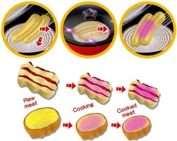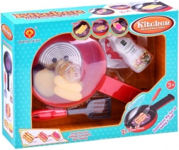 Ten zestaw kuchenny oferuje wspaniałą zabawę dla każdego dziecka, które lubi kulinarne przygody. Patelnia po naciśnięciu przycisku na rączce świeci i wydaje dźwięki smażonych dań, co sprawia, że zabawa jest bardziej realistyczna. Dodatkowo smażone produkty zmieniają kolor pod wpływem świateł na patelni.