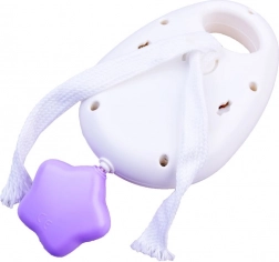 W zestawie znajduje się także mobilna pozytywka, którą można łatwo przymocować do wózka, łóżeczka lub fotelika samochodowego. Wystarczy pociągnąć za sznurek, a pozytywka zacznie grać kojącą melodię, podczas gdy obracające się gwiazdki zaciekawią i uspokoją Twoją pociechę.