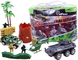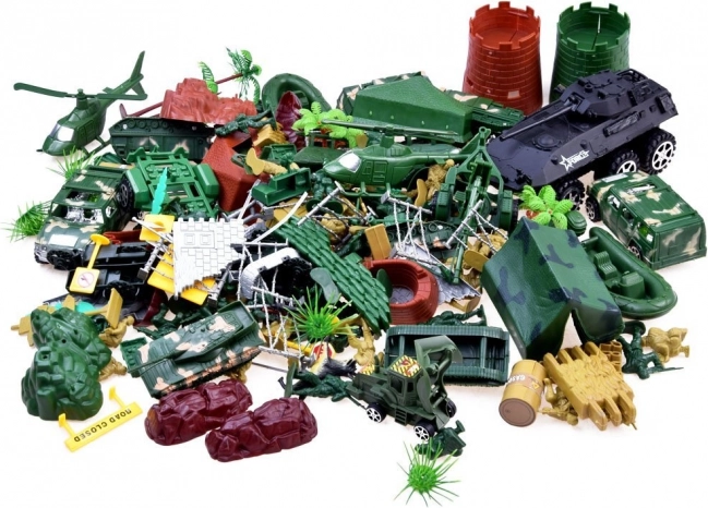 Duży zestaw zabawek wojskowych do epickiej i kreatywnej zabawy. Zawiera szeroki wybór czołgów, pojazdów, żołnierzy i innego wyposażenia, które zapewniają godziny rozrywki i imaginacyjnej zabawy.
