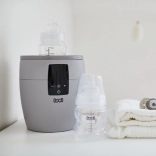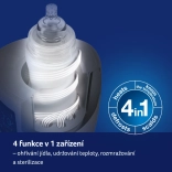 Podgrzewacz do butelek LOVI 4 w 1. Szybkie i równomierne podgrzewanie. Intuicyjna obsługa na czytelnym ekranie. 4 funkcje w trzech trybach: tryb BOTTLE – podgrzewanie płynów w butelce, rozmrażanie posiłków przechowywanych w woreczku. Utrzymuje wymaganą temperaturę aż do 10 godzin. Tryb HOT – szybkie podgrzewanie posiłku + funkcja sterylizacji butelek i akcesoriów. Tryb DINNER – utrzymuje wymaganą temperaturę aż do 3 godzin. Bezpieczny – automatyczne wyłączenie przy braku wody w trybie HOT. W zestawie miarka do wody. Podgrzewacz LOVI to idealny i bezpieczny sposób podgrzewania posiłków. Zawiera termostat, który utrzymuje ustawioną temperaturę przez bardzo długi czas. Chroni posiłek przed przegrzaniem i utratą cennych witamin oraz minerałów. Super szybki podgrzewacz LOVI automatycznie dobiera czas podgrzewania posiłku niezależnie od tego, czy jest on schłodzony, zamrożony czy w temperaturze pokojowej. Podgrzewacz LOVI jest przeznaczony do podgrzewania posiłków w następujących typach butelek lub słoiczków: • w butelkach LOVI i większości innych butelek z szeroką szyjką, • w klasycznych butelkach, • w słoiczkach z gotowym posiłkiem dla dzieci. Maksymalna szerokość butelki odpowiedniej do tego podgrzewacza to 6,5 cm. 4 funkcje w 1 – podgrzewa, utrzymuje temperaturę, rozmraża i sterylizuje parą. Szybki – podgrzewa posiłek już w 2 minuty, co stawia go przed większością podgrzewaczy dostępnych na rynku. *80 ml mleka/wody o temperaturze początkowej 21°C. Uniwersalny – kompatybilny z większością butelek dla niemowląt dostępnych na rynku. Bezpieczny – automatyczne wyłączenie przy braku wody w trybie HOT. Podgrzewacz spełnia wymagania: Dyrektywy Parlamentu Europejskiego i Rady 2006/95/WE w sprawie harmonizacji przepisów państw członkowskich dotyczących urządzeń elektrycznych przeznaczonych do użytku w określonych granicach napięcia. Dyrektywy Parlamentu Europejskiego i Rady 2011/65/UE w sprawie ograniczenia stosowania niektórych niebezpiecznych substancji w sprzęcie elektrycznym i elektronicznym. Dyrektywy Parlamentu Europejskiego i Rady 2004/108/WE dotyczącej zbliżenia przepisów państw członkowskich odnoszących się do kompatybilności elektromagnetycznej. Uwaga: Dokładne instrukcje dotyczące właściwej i prawidłowej konserwacji produktu znajdują się w instrukcji użytkownika.
