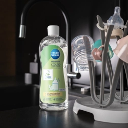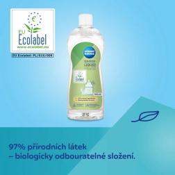 Delikatny, a jednocześnie wysoce skuteczny środek do codziennego mycia dziecięcych butelek i smoczków. Skład z 97% naturalnych składników radzi sobie z resztkami mleka, kaszek i soków, bez perfum i barwników, o neutralnym pH i dermatologicznie testowanej recepturze. Biodegradowalny i z certyfikatem EU Ecolabel – łagodny dla skóry i środowiska.