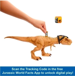 Figurka akcji T‑Rex z serii Jurassic World oferuje realistyczne odgłosy ryku, nową funkcję ataku z otwartą paszczą i obrotem głowy oraz zdejmowalne urządzenie śledzące do przygód w terenie. Dzięki długości ok. 48 cm i wysokości 17 cm zachwyci małych i dużych fanów dinozaurów, a także zapewni rozszerzoną cyfrową zabawę w aplikacji Jurassic World Facts po zeskanowaniu ukrytego tagu DNA.