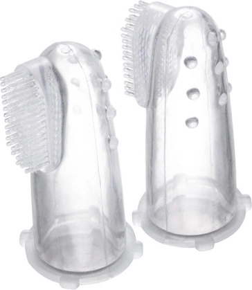 Silikonowa szczoteczka jest przeznaczona do mycia pierwszych ząbków dziecka oraz masażu dziąseł. Polecamy ją również dla dzieci, które jeszcze nie mają ząbków. Konstrukcja szczoteczki umożliwia czyszczenie i masaż trudno dostępnych miejsc. Specjalne wypustki dokładnie masują dziecięce dziąsła. Uczy dziecko prawidłowej higieny jamy ustnej. Umożliwia rodzicom bezpieczne czyszczenie, bez obaw o uszkodzenie wrażliwych dziecięcych dziąseł, do którego może dojść przy użyciu klasycznych szczoteczek do zębów, co mogłoby zniechęcić dziecko do mycia zębów. Nałóż szczoteczkę na palec wskazujący (patrz obrazek) i delikatnie czyść oraz masuj dziecięce dziąsła.Instrukcja użycia: Utrzymuj w czystości. Przed każdym użyciem sterylizuj we wrzącej wodzie przez 5 minut. Po użyciu szczoteczkę dokładnie umyj i opłucz.Ważne! Dla bezpieczeństwa i zdrowia Twojego dziecka! Przed każdym użyciem sprawdź produkt. Przy pierwszych oznakach uszkodzenia lub zużycia natychmiast wyrzuć produkt i nie używaj go dalej. Produkt nie jest zabawką, przechowuj go poza zasięgiem dziecka. Szczoteczka spełnia wymagania: Dyrektywy Parlamentu Europejskiego i Rady 2001/95/WE w sprawie ogólnego bezpieczeństwa produktów.