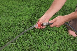 Wbudowany zraszacz pośrodku baseniku tworzy wodną mgiełkę – wystarczy podłączyć standardowy wąż ogrodowy i zabawa może się zacząć.