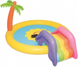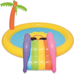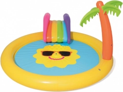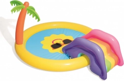 Zamień ogród w mini park wodny! Dziecięcy wodny plac zabaw BESTWAY z motywem uśmiechniętego słoneczka zachęca do harców i orzeźwienia w upalne dni. Wystarczy podłączyć wąż ogrodowy, a wbudowany zraszacz stworzy orzeźwiającą fontannę. Wyjmowana zjeżdżalnia w kolorowym wydaniu ucieszy małych odkrywców, a miękki i mocny winyl zapewni wygodną i bezpieczną zabawę.