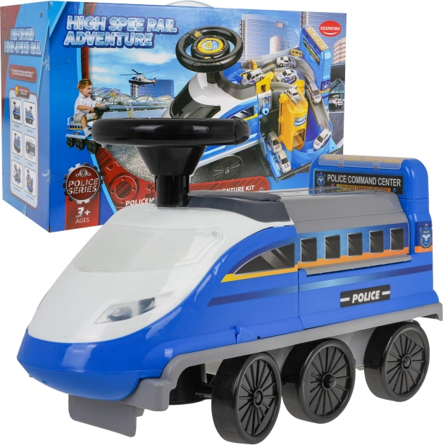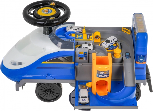 Interaktywny jeździk-pociąg z policyjnym parkingiem jest idealny dla dzieci od 3 lat. Ten innowacyjny jeździk wykonano z wysokiej jakości, nietoksycznego plastiku, co zapewnia długą żywotność i bezpieczeństwo dla dzieci. Pociąg ma sześć kół, z których dwa przednie są skrętne, a pod siedziskiem znajduje się składany policyjny parking z wieloma ruchomymi elementami, w tym zjeżdżalniami, windą i zaporami, które można ustawić według własnych upodobań.