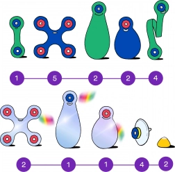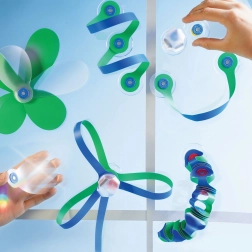 Przyssawki pozwalają tworzyć na oknach i innych gładkich powierzchniach. Pryzmatyczne elementy załamują światło i tworzą efektowne kolorowe refleksy, zmieniając każde okno w planszę do zabawy.