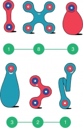 Unikalny kształt i elastyczna konstrukcja pozwalają zginać, skręcać i łączyć elementy w modele płaskie i przestrzenne – od prostych zwierzątek po fantazyjne maszyny.