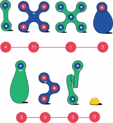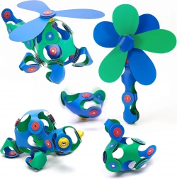 Magnesy z możliwością obrotu o 360° i blokadą w 24 pozycjach pewnie trzymają konstrukcje – od prostych modeli po bardziej złożone kształty.