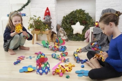 Elastyczne elementy z magnesami pozwalają dzieciom układać płaskie i przestrzenne modele – od zwierzątek po fantazyjne postacie. Zabawa naturalnie rozwija motorykę małą, wyobraźnię i koncentrację.
