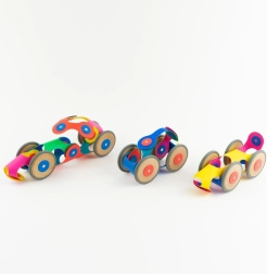 CLIXO Wheel Creator to elastyczna magnetyczna układanka dla dzieci w wieku 6–10 lat, która rozwija kreatywność, percepcję przestrzenną i małą motorykę. Dzięki obrotowym magnesom z blokadą w 24 pozycjach modele dobrze trzymają kształt i nadają się do dynamicznej zabawy. Drewniane koła ożywią Twoje konstrukcje – od aut i pociągów po urocze zwierzątka – a wszystko to w jaskrawych, tęczowych barwach.